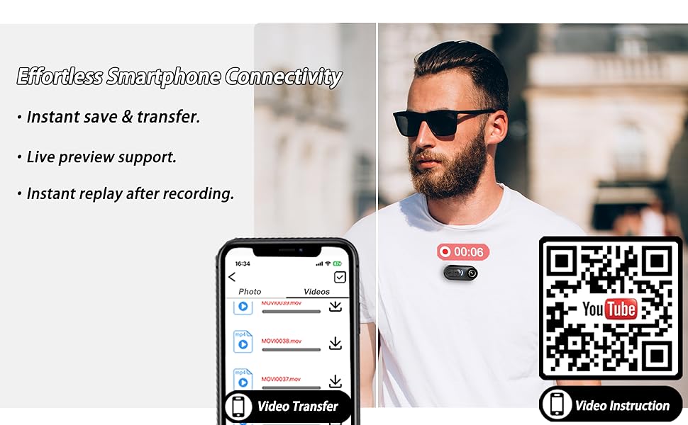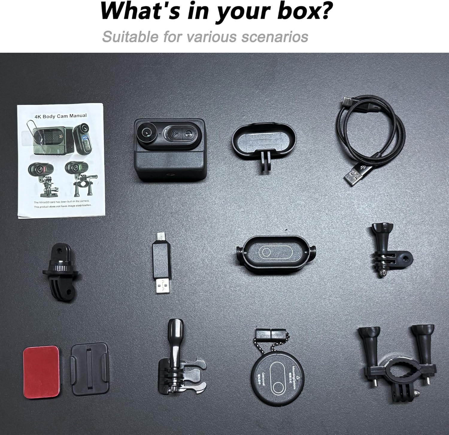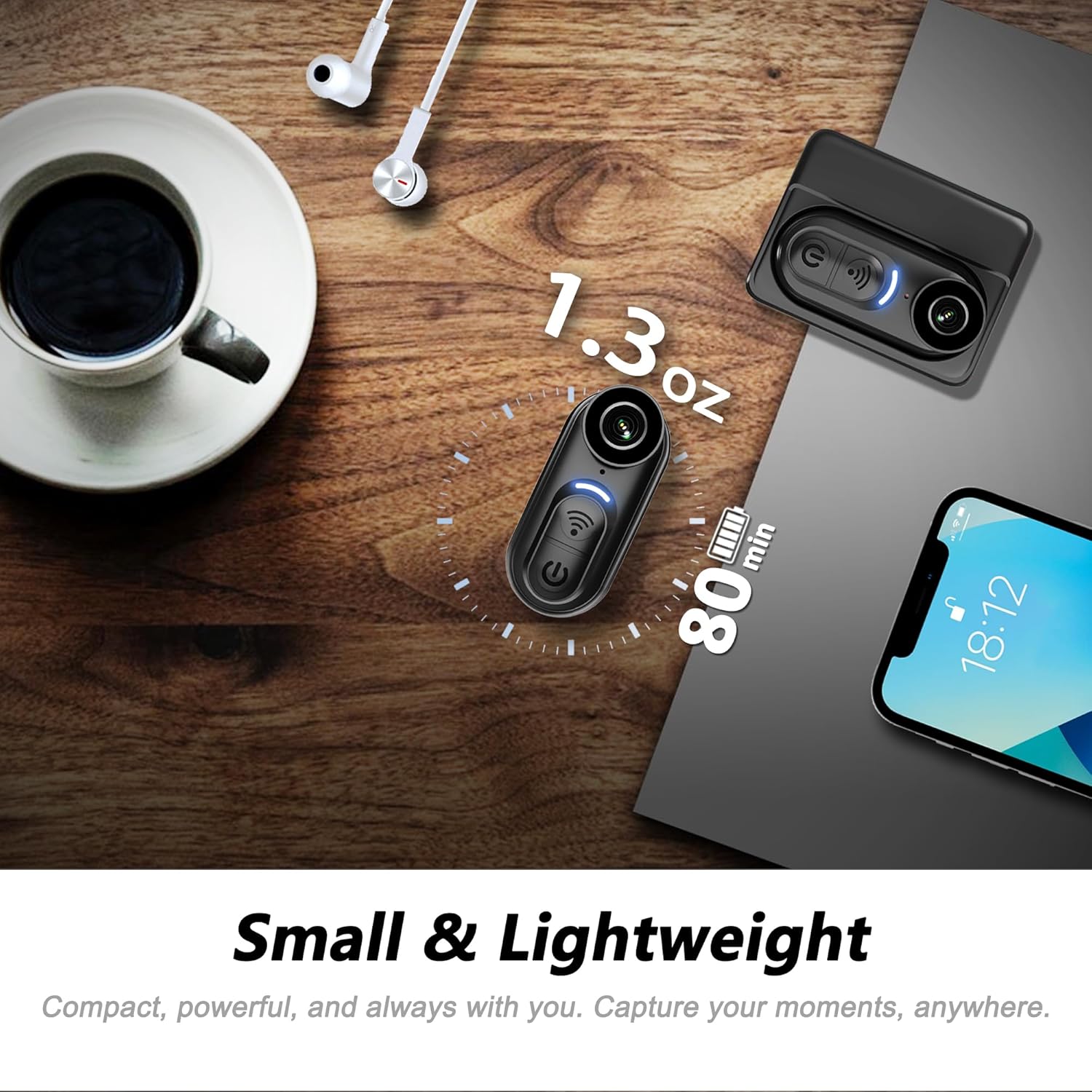 【Thumb Size & Hands-Free】Experience ultimate convenience with this incredibly compact, thumb size body camera. Its lightweight, wearable action camera design clips securely to collars, bags, or straps for true hands-free POV camera shooting from your unique perspective.