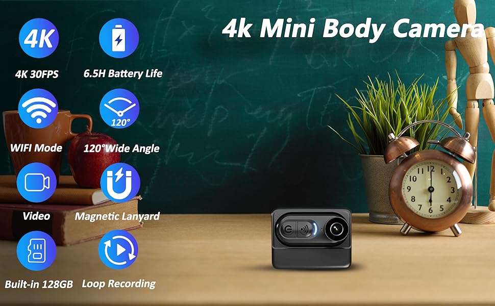 【4K Ultra HD Recording】Preserve every moment in stunning 4K Ultra HD with crystal-clear audio. Whether for vlogs, travel, or work, this mini body camera delivers professional video quality you can rely on.
